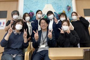 お知らせ 広報誌 採用情報 研修・勉強会 情報公開 藤戸クリニック オレンジカフェ 一覧を見る 2025/09/01 [期間限定]【医療法人福寿会】入職奨励金制度を活用しましょう! 入職奨励金制度とは、法人が認めた資格を保持し、自己応募(有料職業紹介等を除く)にて採用された職員に対して奨励金を支給する制度です。 看護職・理学療法士・作業療法士・言語聴覚士・介護福祉士・ケアマネージャー・社会福祉士・調 […] お知らせ採用情報 2025/12/01 〈グループホーム大元シルバーメイツ〉星乃珈琲店へ 急に肌寒くなって、車窓からは紅葉した木々 「きれいに色づいているね」と話すうち星乃珈琲店に到着 温かい珈琲と美味しいケーキが楽しみ🎵 ご家族の方にもお声がけし、現地集合しました🚗💨 入居者の皆さまは 一緒に珈琲を飲みなが […] お知らせ 2025/11/28 〈介護付有料老人ホーム恵風〉大運動会開催 ラジオ体操に始まり、玉入れ・輪っかリレー・箱引き・パン食い競争に手話体操 皆さまは張り切って、車いすから転げ落ちそうになりながら奮闘❗🔥 パン食い競争は想像通りの大熱戦 中学生のような大声で賑やかに応援合戦 接戦の結果は […] お知らせ 2025/11/21 R7郁青会が取り組む公益活動〈地域内の連携による人材育成の取り組み〉 倉敷中央高校福祉科と岡山医療福祉専門学校介護福祉学科の介護実習を行いました 倉敷中央高校からは、3名が茶屋町の郷で実習 施設内での介護に加えて、利用者さまのご自宅も訪問し、小規模多機能の特徴について学びました とてもスム […] お知らせ 2025/11/20 〈サンバードデイサービスセンター〉大運動会 〜仮装・競技・きんつば作り〜 スポーツの秋、運動会を開催しました 利用者さまも職員もハロウィンの仮装で楽しそう 「このお面がいいなぁ😄」「似合っているよ✨」 借り物競争は”〇〇な人” 声を掛け合って交流が深まります 玉入れでは […] お知らせ 2025/11/17 〈サンバードナーシングホーム〉秋の外出イベント 水島イオンとチャチャへ買い物にお出かけ 久しぶりの外出で、少しおしゃれをして、「喫茶で何を食べよう?」「何を買おう?」とワクワク💓 たくさんのメニューからお好きなデザートを選び、笑顔で召し上がっていっらしゃいました 商品 […] お知らせ 2025/11/11 第31回「オレンジカフェあまちゃ」10月開催☕ 今月のあまちゃは脳トレ三昧 “イントロ・ドン”、口ずさむのは簡単ですが、題名となると…🤔💭 歌手の名前が出ると曲名を思い出せたり 懐かしい曲がいっぱい挙がりました🎵 漢字組み立てクイズ 大きく分解した部首に混乱して何度も […] オレンジカフェ 2025/11/10 〈グループホーム北畝〉紅葉散策 紅葉を楽しみに福田公園、種松山へ 公園では紅葉が色づき始め、山の上では散り始めていました あっという間に冬が来そうです グループホーム北畝 私たちと一緒に働いてみませんか? お知らせ 2025/11/06 【講義】なるほどプロフェッショナル 岡山県立倉敷天城中学校の総合的な学習の時間(AMAKI学)「なるほどプロフェッショナル」で、医師の仕事について講義を行いました 受験に向けての勉強のコツも 医師になるためにはやはり勉強が大切です どんなことでも、夢中にな […] 研修・勉強会藤戸クリニック 2025/12/01 〈グループホーム大元シルバーメイツ〉星乃珈琲店へ 急に肌寒くなって、車窓からは紅葉した木々 「きれいに色づいているね」と話すうち星乃珈琲店に到着 温かい珈琲と美味しいケーキが楽しみ🎵 ご家族の方にもお声がけし、現地集合しました🚗💨 入居者の皆さまは 一緒に珈琲を飲みなが […] お知らせ 2025/11/28 〈介護付有料老人ホーム恵風〉大運動会開催 ラジオ体操に始まり、玉入れ・輪っかリレー・箱引き・パン食い競争に手話体操 皆さまは張り切って、車いすから転げ落ちそうになりながら奮闘❗🔥 パン食い競争は想像通りの大熱戦 中学生のような大声で賑やかに応援合戦 接戦の結果は […] お知らせ 2025/11/21 R7郁青会が取り組む公益活動〈地域内の連携による人材育成の取り組み〉 倉敷中央高校福祉科と岡山医療福祉専門学校介護福祉学科の介護実習を行いました 倉敷中央高校からは、3名が茶屋町の郷で実習 施設内での介護に加えて、利用者さまのご自宅も訪問し、小規模多機能の特徴について学びました とてもスム […] お知らせ 2025/11/20 〈サンバードデイサービスセンター〉大運動会 〜仮装・競技・きんつば作り〜 スポーツの秋、運動会を開催しました 利用者さまも職員もハロウィンの仮装で楽しそう 「このお面がいいなぁ😄」「似合っているよ✨」 借り物競争は”〇〇な人” 声を掛け合って交流が深まります 玉入れでは […] お知らせ 2025/11/17 〈サンバードナーシングホーム〉秋の外出イベント 水島イオンとチャチャへ買い物にお出かけ 久しぶりの外出で、少しおしゃれをして、「喫茶で何を食べよう?」「何を買おう?」とワクワク💓 たくさんのメニューからお好きなデザートを選び、笑顔で召し上がっていっらしゃいました 