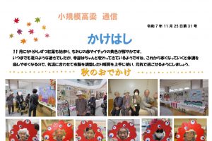 すべて お知らせ 広報誌 採用情報 研修・勉強会 情報公開 藤戸クリニック オレンジカフェ 2025/12/05 〈小規模多機能型居宅介護 高梁〉広報誌のご紹介📖 小規模多機能型居宅介護 高梁 12月号 〈CONTENTS〉 ● 秋のおでかけ ● 年末年始のお知らせ 広報誌 2025/10/20 [広報誌 倉敷藤戸荘]令和7年夏秋号 広報誌 倉敷藤戸荘 令和7年夏秋号 ● 敬老会 ● 音楽療法 ● そうめん流し ● 職員救命講習 ● スイカ割りゲーム ● 通所・作業活動 ● 入所・作業活動 ● クラブ活動のご紹介 ● おすすめレシピ 他 […] 広報誌 2025/06/20 [広報誌 倉敷藤戸荘]令和7年春号 広報誌 倉敷藤戸荘 令和7年春号 ● 春の運動会 ● 高校生 来荘 ● 劇団たんぽぽ座 公演 ● 入所・通所 お花見 ● 新入職員紹介 ● クラブ活動のご紹介 ● おすすめレシピ 他 【老人保 […] 広報誌 2025/05/21 [藤戸クリニック便り]2025年5月号 藤戸クリニック便り5月号は、 「新院長 就任のご挨拶」「新事務長 就任のご挨拶」「多職種連携ってどんなこと?」をお届けします。 ▼こちらからもご覧いただけます。(PDF) 藤戸クリニック便り 2025.05 […] 広報誌藤戸クリニック 2025/05/21 〈小規模多機能型居宅介護 高梁〉広報誌のご紹介📖 小規模多機能型居宅介護 高梁 5月号 〈CONTENTS〉 ● 100歳のお祝い ● 小規模での日常 ● 地域密着コーナー~いつも小規模高梁を支えてくださっている方々に質問してみました~ ● 事業所内研修 広報誌 2025/04/21 〈小規模多機能型居宅介護 高梁〉広報誌のご紹介📖 小規模多機能型居宅介護 高梁 特別号 〈CONTENTS〉 ● 学生さんが実習に来られました ● 地域密着コーナー~いつも小規模高梁を支えてくださっている方々に質問してみました~ ● 日頃から備える防災・減災のお話 広報誌 2025/04/18 〈小規模多機能型居宅介護 高梁〉広報誌のご紹介📖 第23号 小規模多機能型居宅介護 高梁 4月号 〈CONTENTS〉 ● お花見ドライブ ● 地域密着コーナー~いつも小規模高梁を支えてくださっている方々に質問してみました~ 広報誌 2025/02/20 [広報誌 倉敷藤戸荘]令和7年冬号 広報誌 倉敷藤戸荘 令和7年冬号 ● ご挨拶 ● おせち料理 ● 藤戸神社に参拝 ● とんど焼き ● 備中子ども神楽 ● 百寿のお祝い ● 入所・通所 作業活動 ● 人気メニューのご紹介 ● クラブ活動のご […] 広報誌 2025/01/15 [藤戸クリニック便り]2025年1月号 藤戸クリニック便り1月号は、 「新年のご挨拶」「入院後の行き先について」をお届けします。 ▼こちらからもご覧いただけます。(PDF) 藤戸クリニック便り 2025.01 広報誌藤戸クリニック 2024/12/23 〈小規模多機能型居宅介護 高梁〉広報誌のご紹介📖 第20号 小規模多機能型居宅介護 高梁 12月号 〈CONTENTS〉 ● クリスマス飾り ● 職員に質問してみました!コーナー ● 火災避難訓練 広報誌 2024/11/25 〈小規模多機能型居宅介護 高梁〉広報誌のご紹介📖 第19号 小規模多機能型居宅介護 高梁 11月号 〈CONTENTS〉 ● 秋のお出かけ ● 職員に質問してみました!コーナー ● お庭で焼き芋 広報誌 2024/09/24 〈小規模多機能型居宅介護 高梁〉広報誌のご紹介📖 第17号 小規模多機能型居宅介護 高梁 広報誌 〈CONTENTS〉 ● お習字教室 ● 敬老会 ● コラム ● 結核とはどんな病気? ● 職員に質問してみました! コーナー 広報誌 1 2 3 →